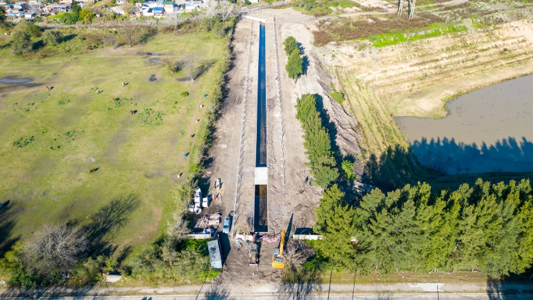 “El objetivo es brindar un canal abierto para alivianar y descomprimir todos los desagües pluviales de los barrios cercanos y alrededores, para que el agua pueda fluir directamente hacia el arroyo, de manera correcta”, indicó Sandro Aznarez, ingeniero civil de la Secretaría de Obras Públicas. “El canal cuenta con 200 metros lineales, está compuesto por tabiques de hormigón y una losa en toda su longitud. Esta obra se encuentra en su etapa final. Estamos haciendo el cerco perimetral para evitar accidentes”, agregó.